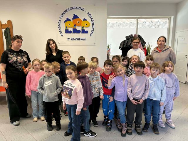 Dzieci z grupy Słoneczniki  i Rumianki odwiedziły Poradnię Psychologiczno - Pedagogiczną w Braniewie.Wzięły udział w zajęciach o charakterze logopedycznym w ramach innowacji pedagogicznej- „Słowa, które mają moc” .